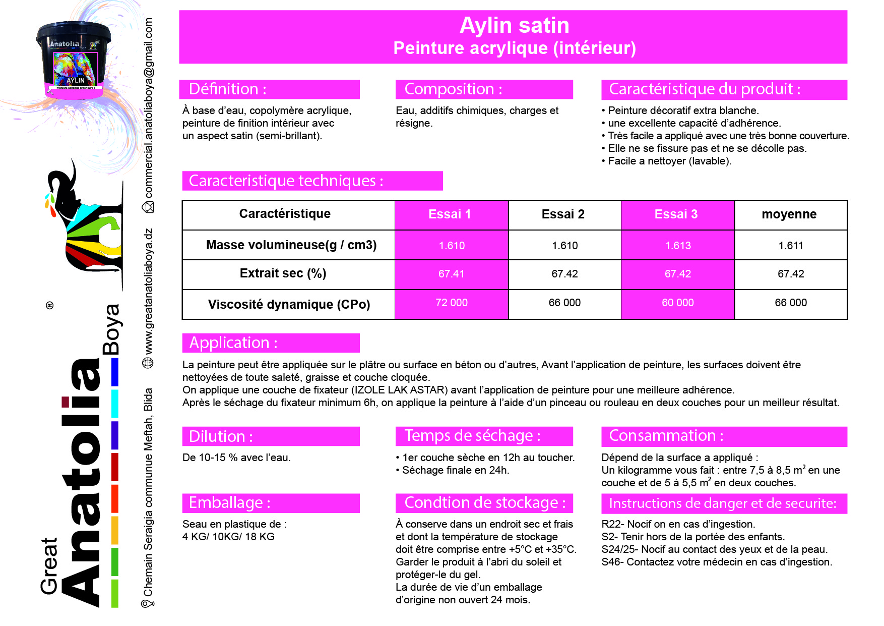 Avantages : • Excellente adhérence. • Extra blanche. • Bonne couvrance. • Lisse et soyeux. Support :