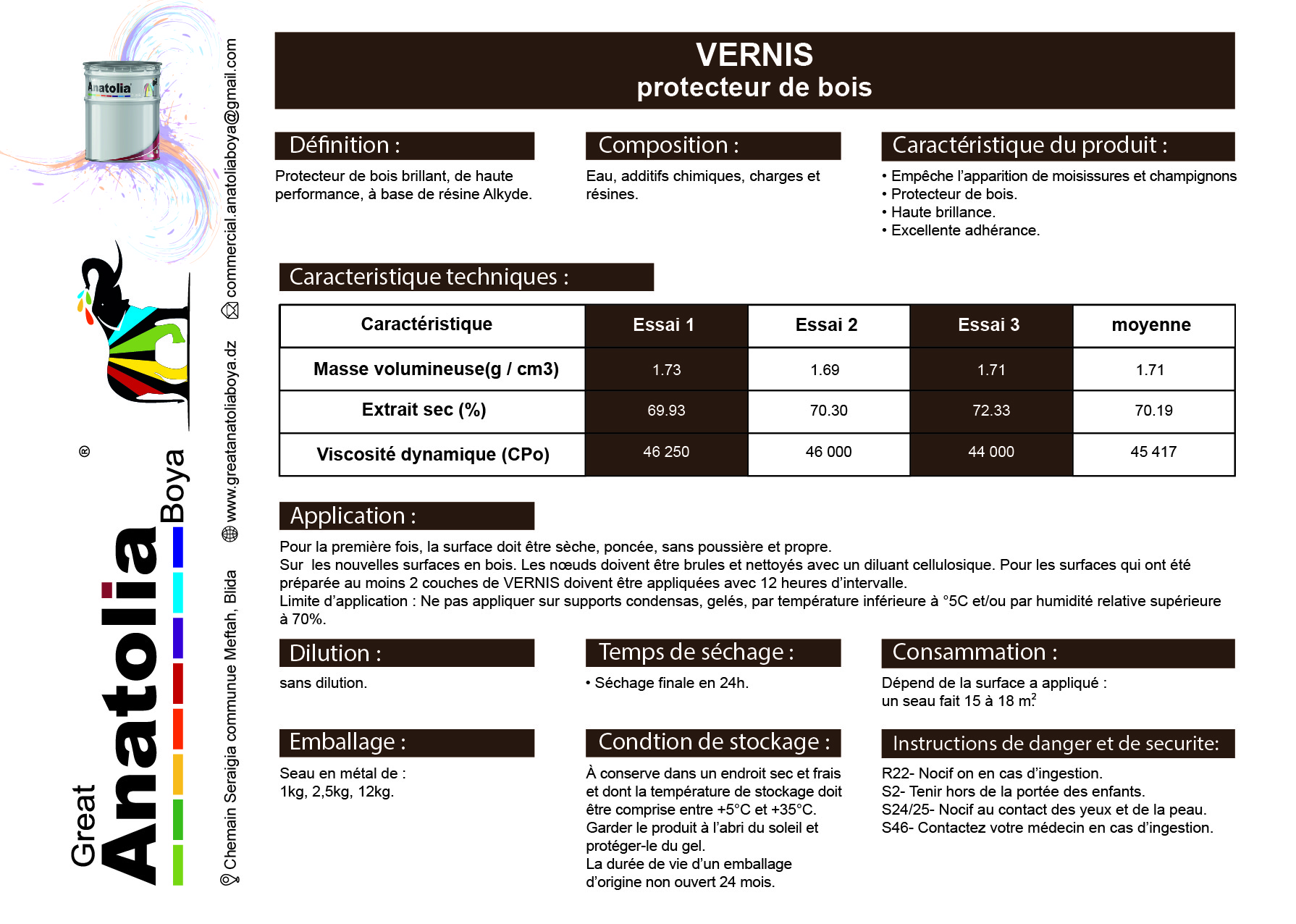Avantages : • Excellente adhérence. • Protection du bois. • Haute brillance. Support :